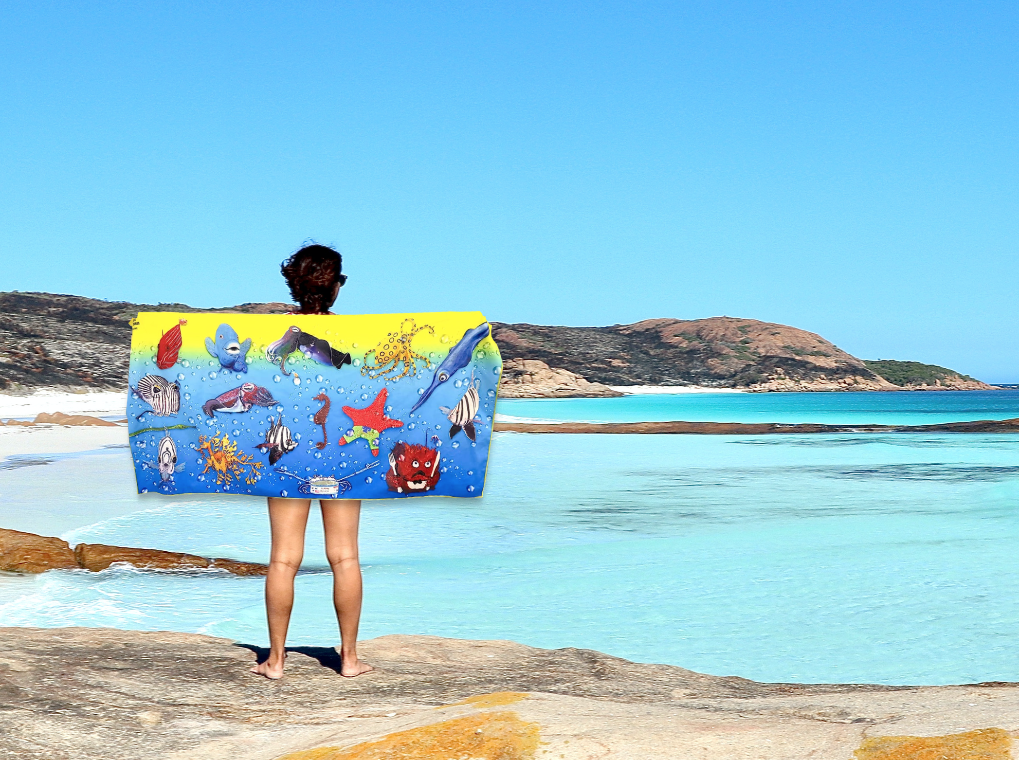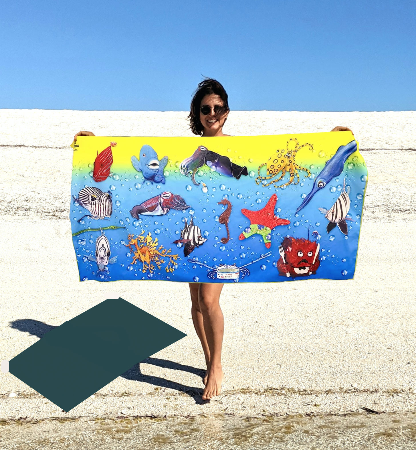 The beach towels are now available with Elizabeth Solich’s Aqua-Clare’s Ocean Adventures underwater characters 🥰 The beach towels are quick dry, light weight, easy to carry, compact and sand free and they fold to nothing! Made of recycled materials, they are great for lounging on the beach or throwing on the lawn and will help you to be familiar with South Australian endemic marine life.